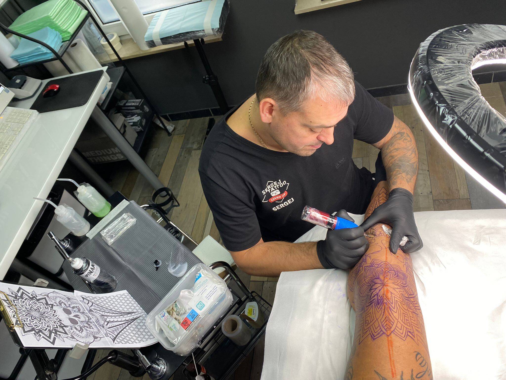 Sergej ist ein Tattoowierer mit sehr großer Erfahrung. Seit 1998 Tattoowiert er schon und seit über 5 Jahren Proffessionel.